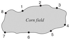Como el granjero piensa que su sobrino es un niño inteligente, tomó su consejo y compró un robot espantapájaros. El robot se mueve a lo largo de un camino que rodea el campo de maíz. En el camino hay N estaciones de carga no tripuladas, numeradas secuencialmente en el sentido de las agujas del reloj a partir de 1. La siguiente figura muestra un ejemplo con ocho estaciones de carga.